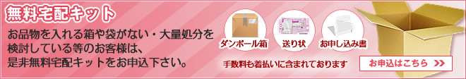 お手元に宅配用の適当な箱や袋などがございません場合、無料で梱包資材を一式お送りさせて頂きます。